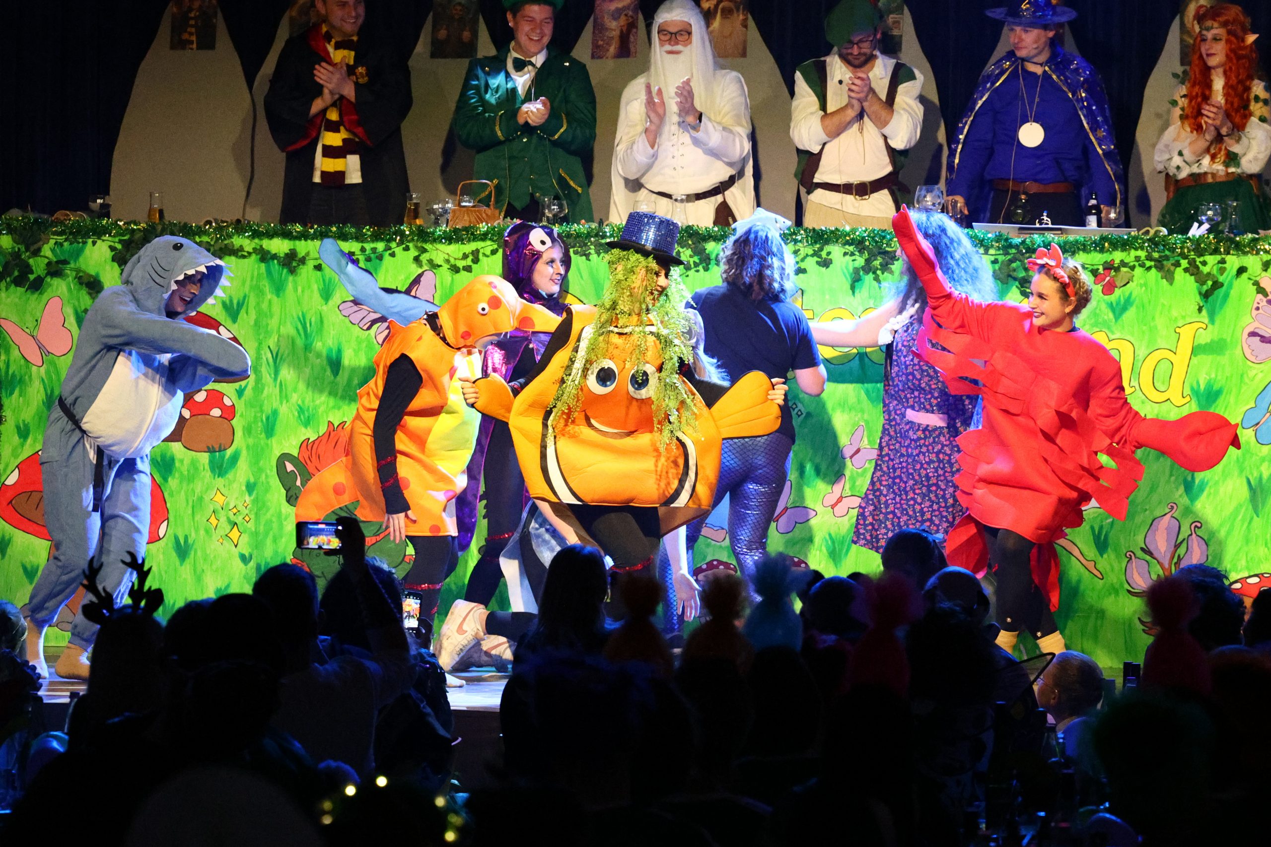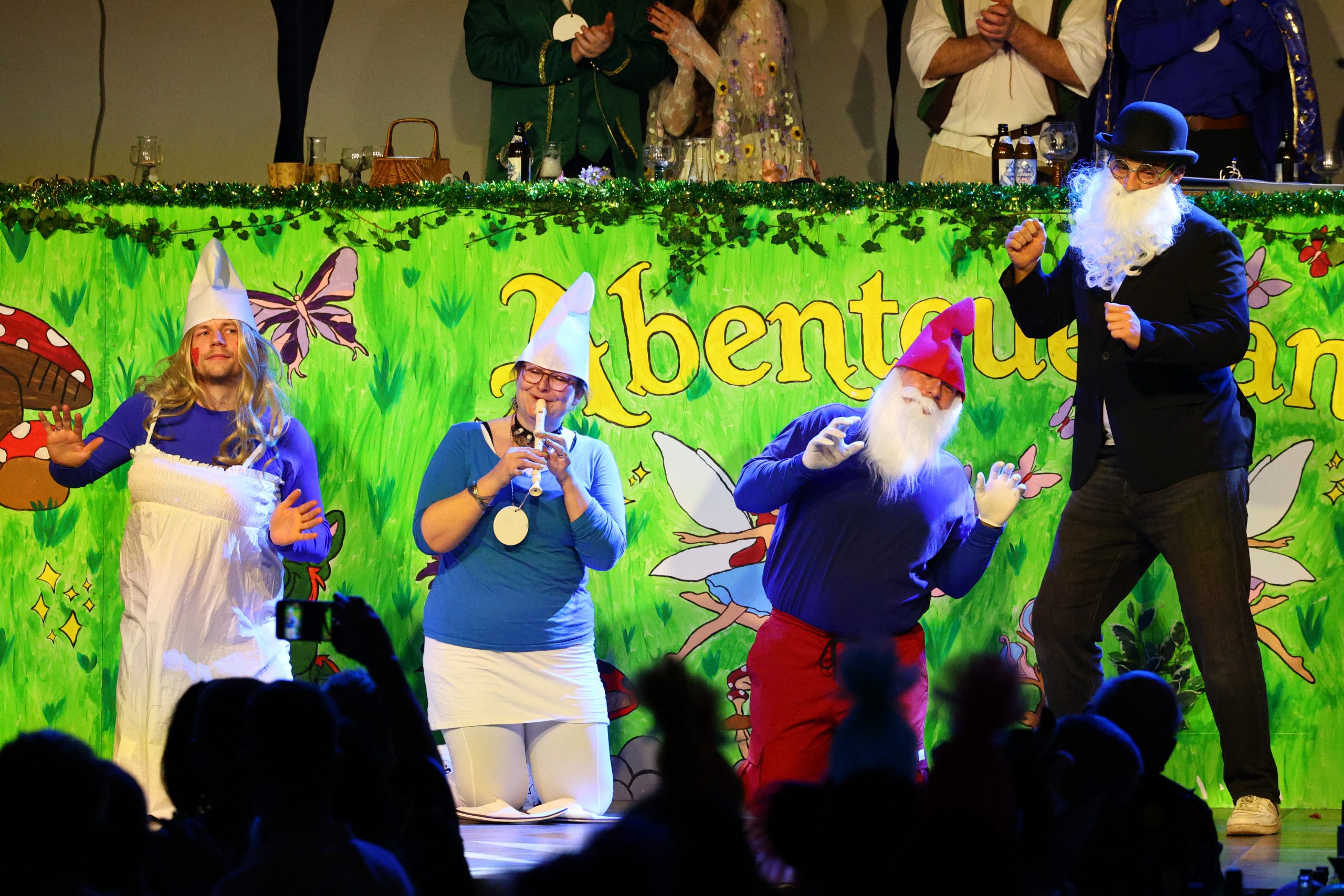 Schon zu Beginn ging es mystisch zu, als Sven Bach als Zauberlehrling aus Molchschleim und Unkenblut einen schimmernden Zaubertrank mixte und die anderen Elferräte und Co-Sitzungspräsident Eike Emich zur Reise ins Abenteuerland auffordert. Verkleidet als liebliche Blütenfeen mit Elbenohren, als Hobbits, Zauberer und Kobolde zog der Elferrat ein. Durchs bunte Programm führten Sven Bach und Eike Emich gemeinsam – mittlerweile schon zum dritten Mal in dieser Konstellation.