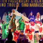 Den Abschluss einer kurzweiligen Sitzung machte das TuS-Männerballett die „Schwäncher“ mit einem imposanten und teils akrobatischen Tanz, bei dem die 27 jungen Männer in farbenfrohen Kostümen, einer davon verkleidet als liebreizende Alice, passend zum Motto im Wunderland unterwegs waren.