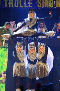 Tänzerisch aktiv auf der Bühne waren die Funkenmariechen Fabienne Rienhardt und Hanna Wüchner mit einer Après-Ski-Party, zwei Nachwuchs-Tanzgruppen des TuS Breithardt, nämlich die „Lollipops“ in Tierkostümen zu Melodien aus dem Walt-Disney-Film König der Löwen sowie die „Diamonds“ in rosa Kostümen zur Musik aus dem Barbie-Film. Ebenfalls dabei war die Showtanzgruppe aus Strinz-Margarethä mit einer atemberaubenden Galanacht auf dem Traumschiff, das Garde-Duo Ariane Schmidt und Chiara Reinhardt auf einem Weltraum-Trip sowie die TuS-Tanzgruppe „Shenti“ mit einem anspruchsvollen und abwechslungsreichen Tanz zum Titel „Walk like an Egyptian“, der in der Zeit der alten Äqypter spielte. Die Gruppe „HuSsies“ sorgte mit einer lustigen Mischung aus Tanz und Playback-Show für etliche Lacher, zogen sie doch als „Randale-Omas auf Partytour“ los, um das Braaderter Nachtleben zu bereichern. Den Abschluss machte das TuS-Männerballett die „Schwäncher“ mit einem imposanten und teils akrobatischen Tanz, bei dem die 21 jungen Männer als „Crazy Circus“ Zirkusluft in der Narrhalla verbreiteten.