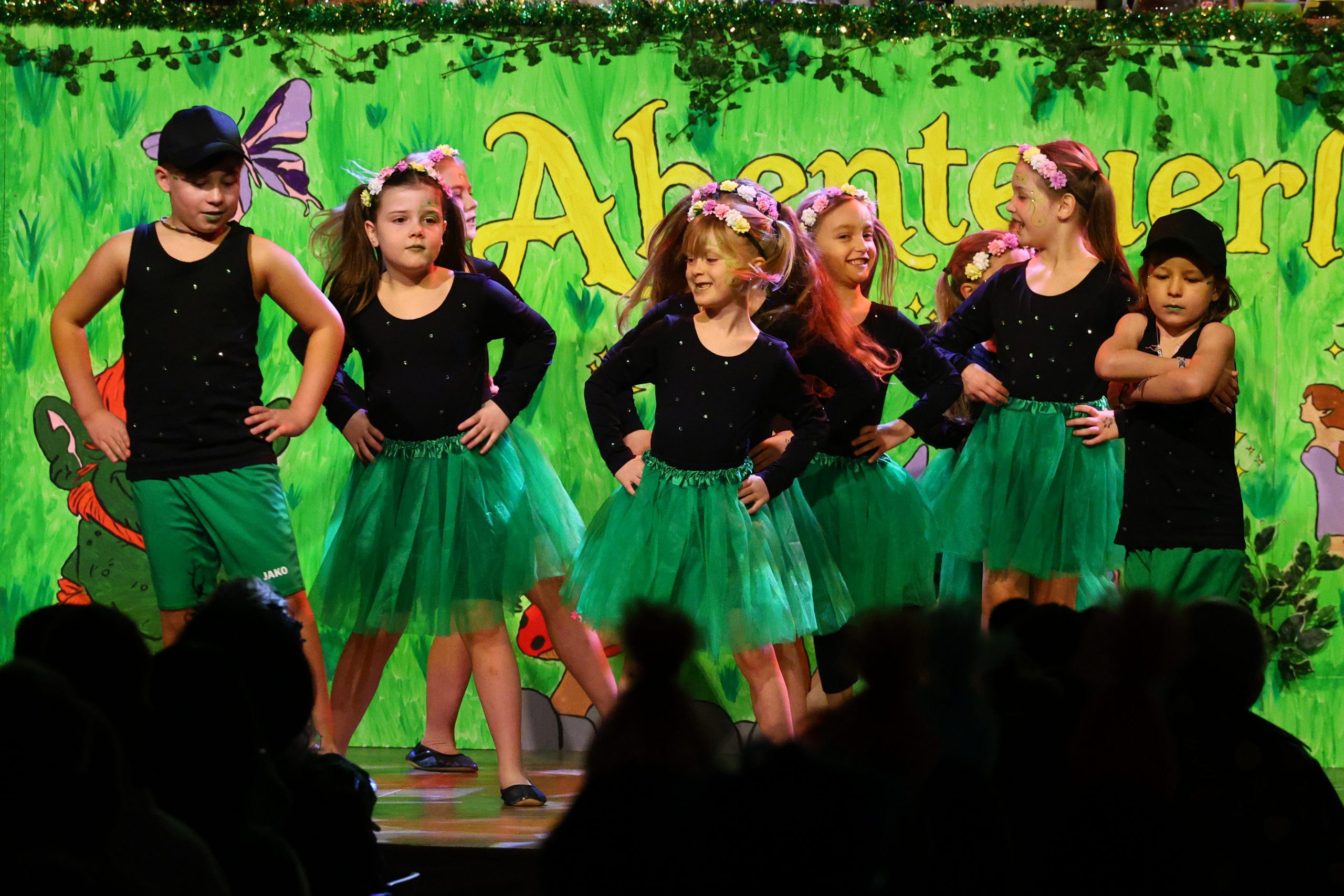 Tänzerisch aktiv auf der Bühne waren vier Nachwuchs-Tanzgruppen des TuS Breithardt, nämlich die „Smileys“ mit einem herzerfrischenden Ausflug in den grünen Dschungel,